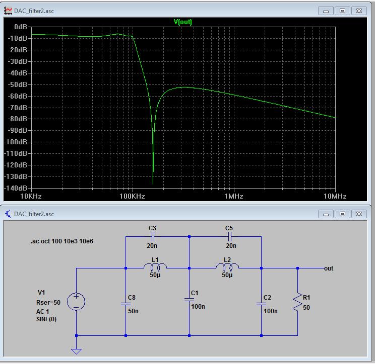 این فیلتر برای مقاومت ورودی و خروجی 50 اهم طراحی شده, بنابراین باید از یک تبدیل امپدانس بعد از DAC استفاده کرد.