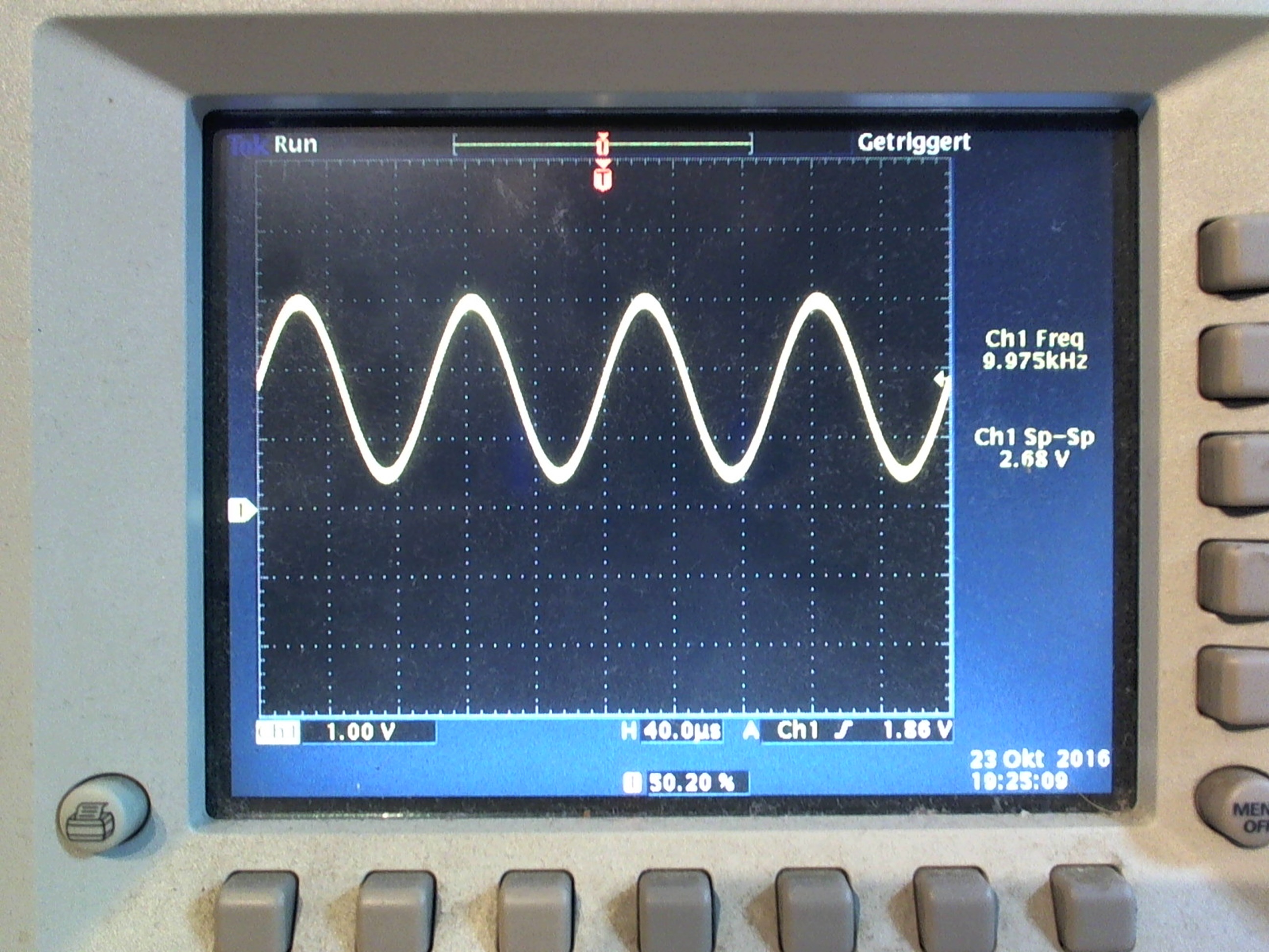 این تصاویر نمونه آزمایشی و سیگنالهای تولید شده با فرکانس 1000 هرتز, 10000 هرتز و 60000 هرتز را نشان میدهند.