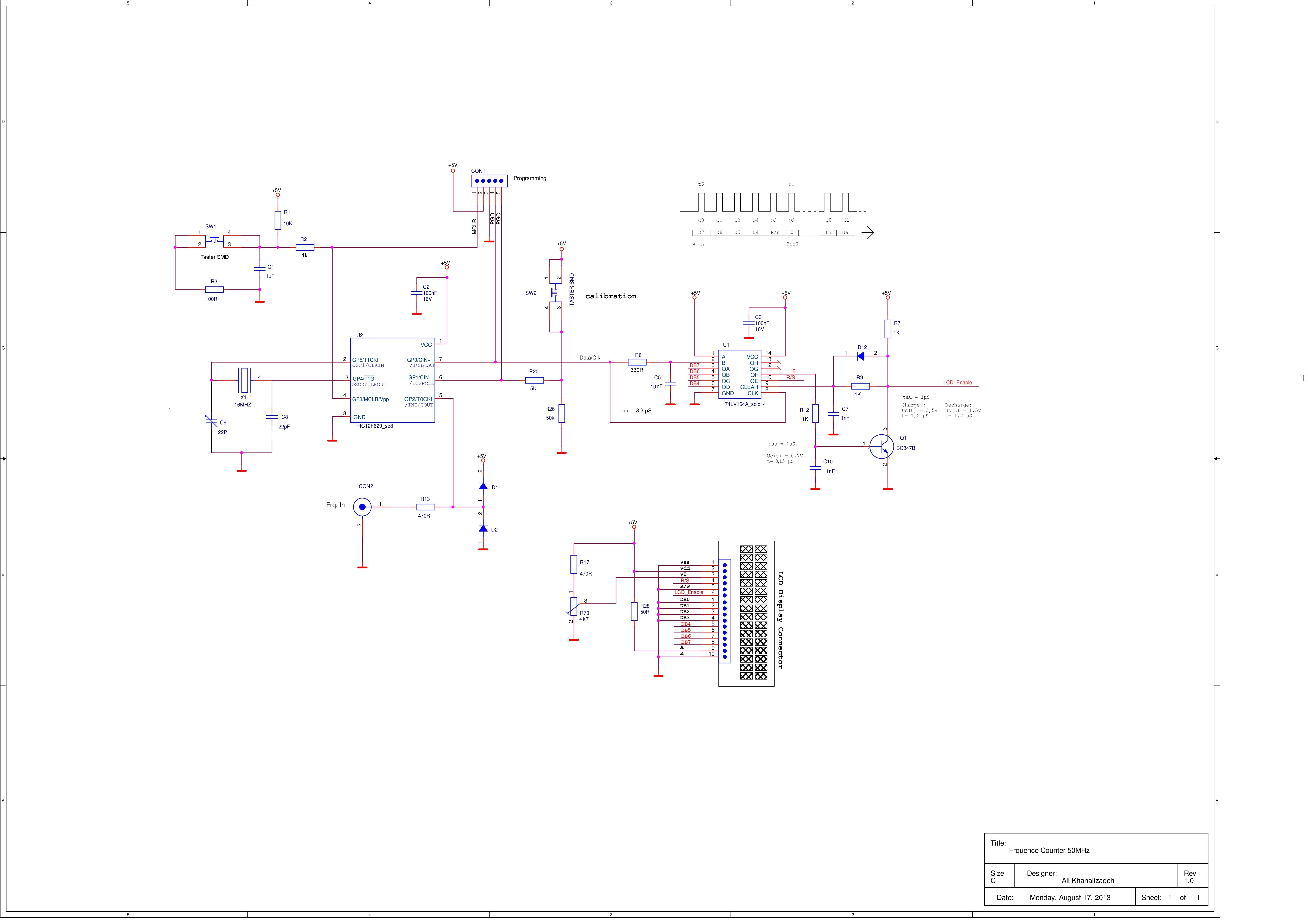 در این مدار از زمان سنج صفر(Timer 0) برای شمارش فرکانس و از زمان سنج یک (Timer 1) برای تعیین زمان اندازهگیری