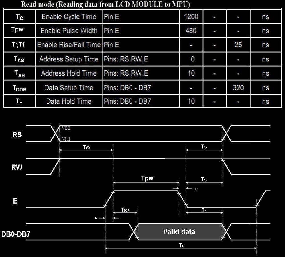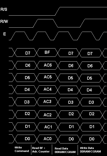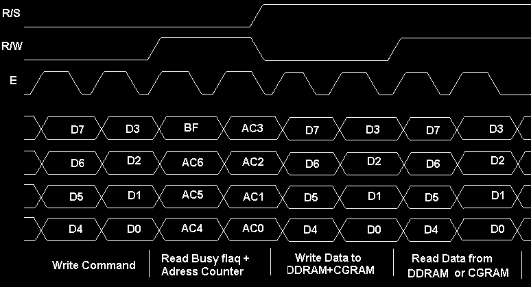 و زمانی که حالت 1 منطقی (High) داشته باشد یعنی LCD آماده دریافت بایت بعدی میباشد.