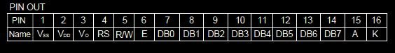 اینترفیس این السیدی تقریبا استاندارد شده و دارای 16 اتصال بصورت زیر است.