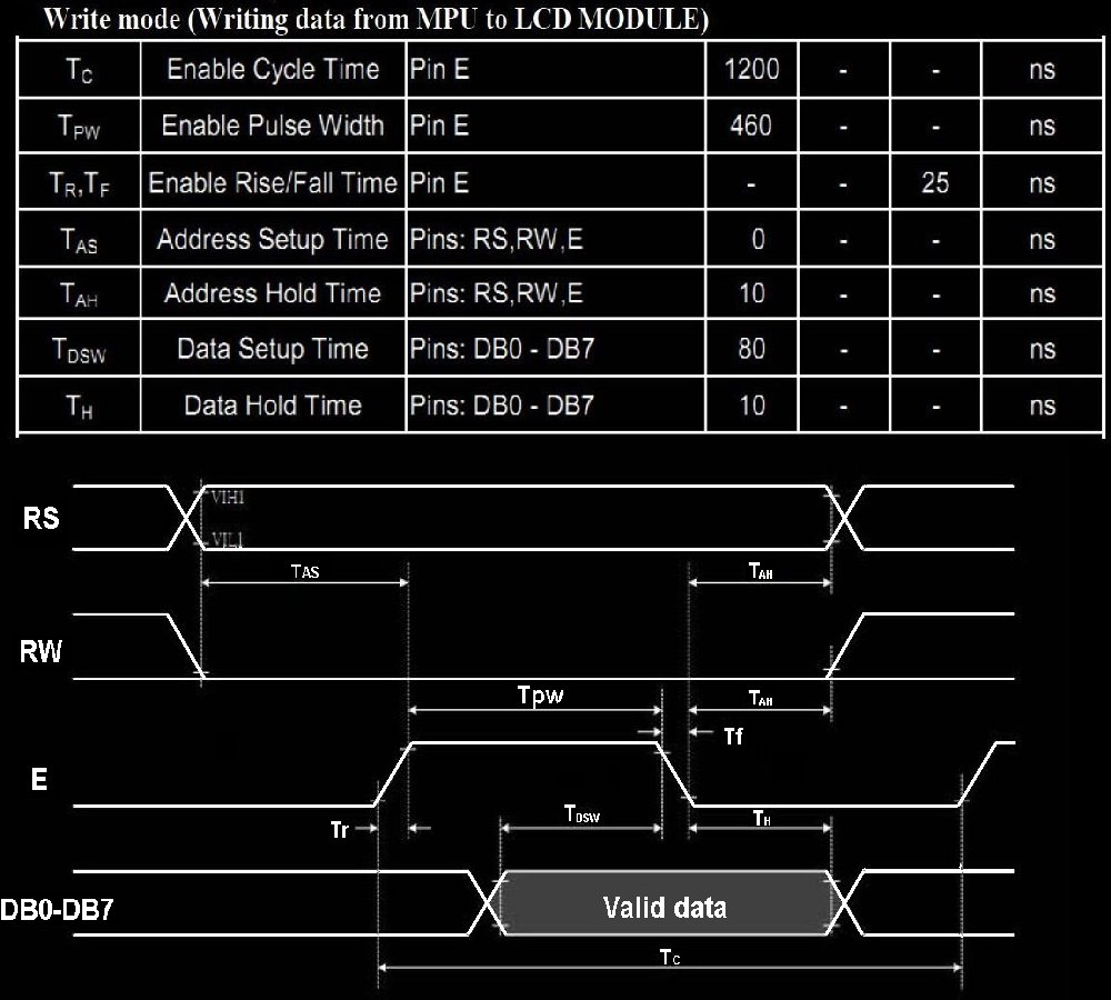 نشاندهنده LCD برای اجرای دستور نوشتن ( Write data to RAM ) به تقریبا حدود 40 µS احتیاج دارد,